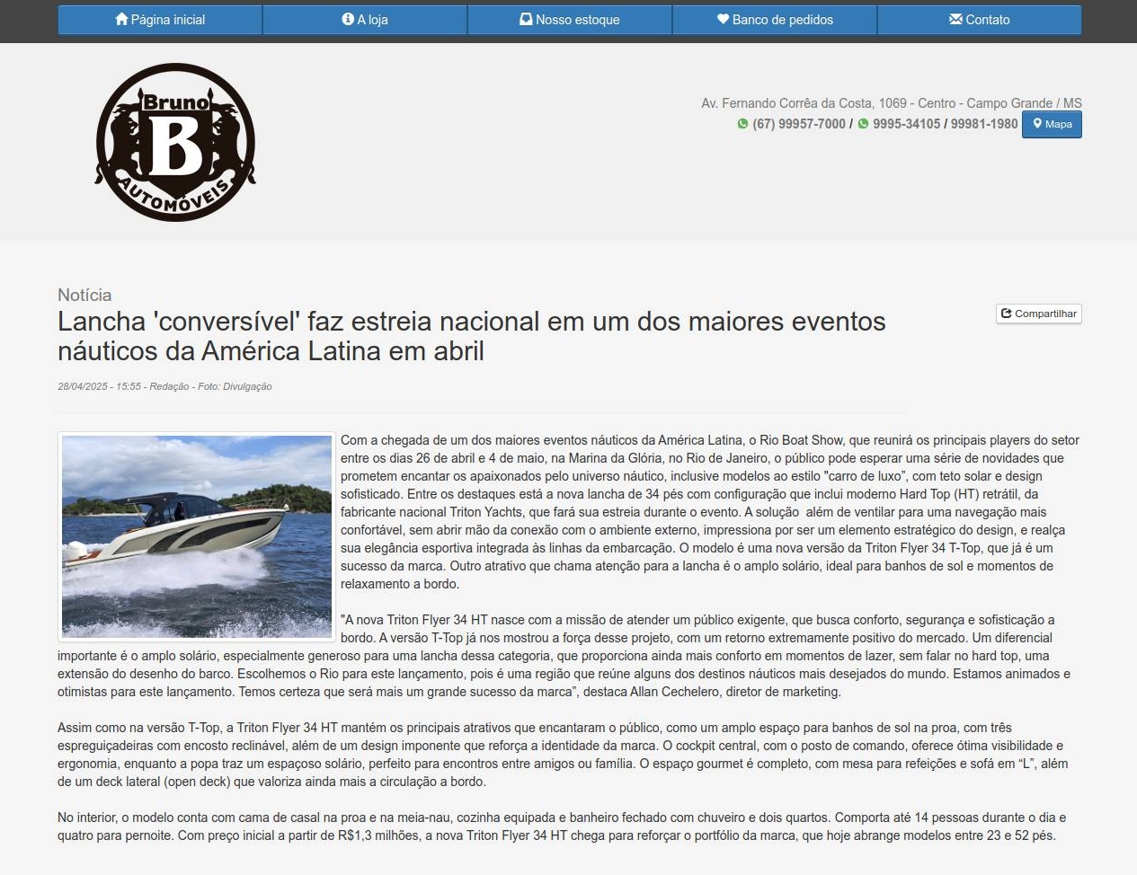 Notícia Lancha 'conversível' faz estreia nacional em um dos maiores eventos náuticos da América Latina em abril 28/04/2025