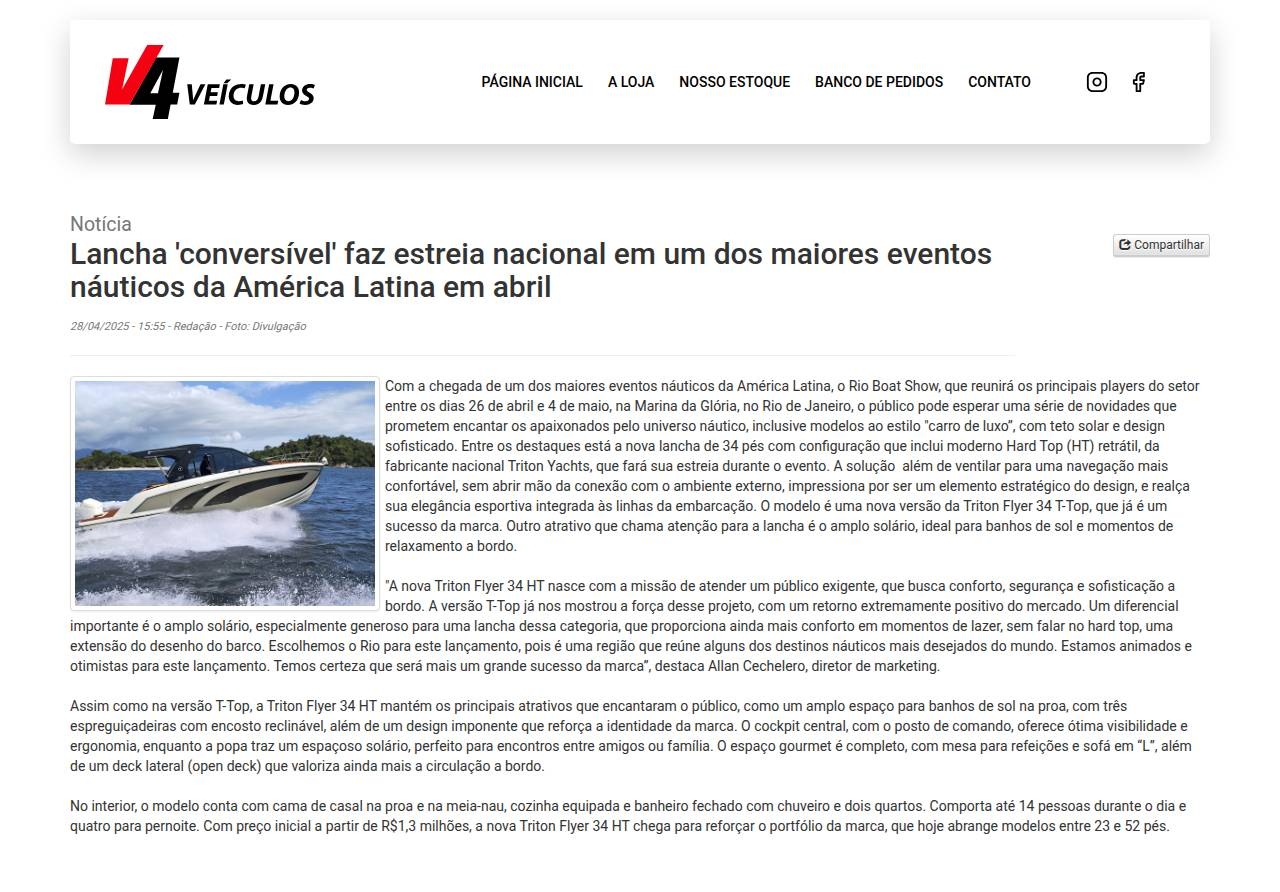 Notícia Lancha 'conversível' faz estreia nacional em um dos maiores eventos náuticos da América Latina em abril 28/04/2025