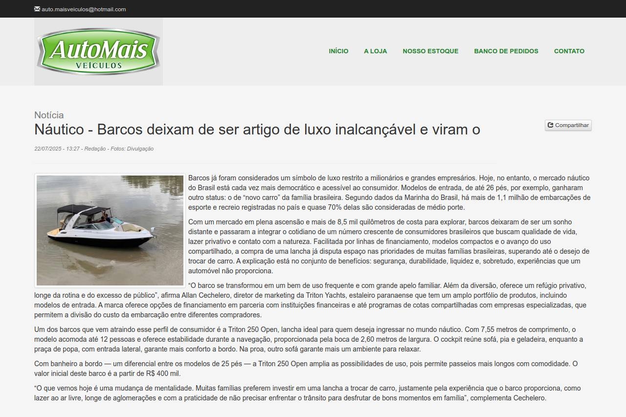 Notícia Náutico - Barcos deixam de ser artigo de luxo inalcançável e viram o 22/07/2025 - 13:27 - Redação - Fotos: Divulga