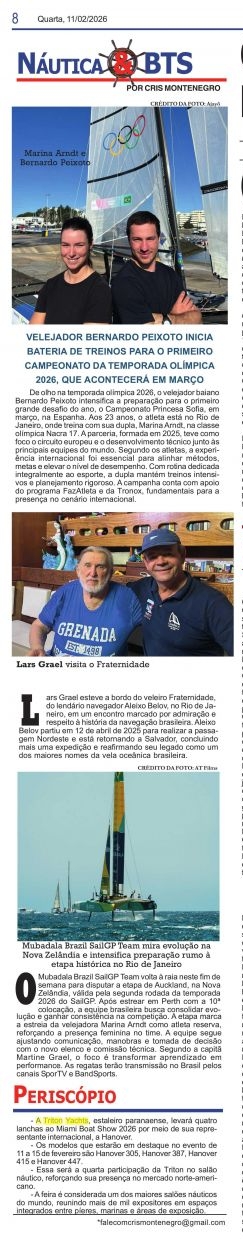 SporTV e BandSports.PERISCÓPIO- A Triton Yachts, estaleiro paranaense, levará quatrolanchas